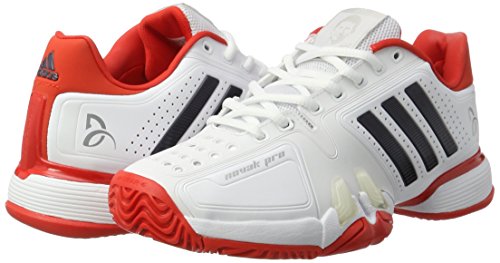 FÜR SCHNELLE FUSSARBEIT Mit dem Novak Pro Tennisschuh kannst du in die Fußstapfen von Novak Djokovic treten und eine kompromisslose Performance abliefern. Der Schuh bietet dir hierfür die nötige Stabilität und Strapazierfähigkeit. Abriebfester Schutz Die ADIWEAR 6 Außensohle bietet dir maximale Strapazierfähigkeit. Sie ist extrem abriebfest und macht auch Slides ohne Probeme mit. Optimale Stabilität Das Obermaterial aus Synthetikleder bietet einen hohen Tragekomfort. Damit du genügend Stabilität für extreme Seitwärtsbewegungen und Richtungsänderungen hast, wurde der Schuh mit Stabilisierungselementen versehen. Dynamisches Abstoßen Um deine Schritte optimal zu dämpfen, wurde der Vorfußbereich mit ADIPRENE® ausgestattet. Dies ermöglicht zusätzlich ein dynamisches und effizientes Abstoßen. ADIPRENE® dämpft den Aufprall im Fersenbereich. Highlights: Signature Details ADIWEAR 6 Sohle ADIPRENE® Dämpfung TORSION® System Stabilisierungselemente
