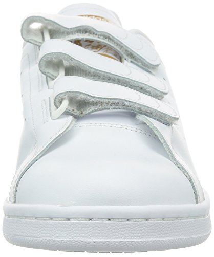 Das weiche Obermaterial aus Leder mit den perforierten drei Streifen sorgt für höchste Atmungsaktivität und einen schnörkelosen Look. Die drei Klettverschlüsse machen das An- und Ausziehen kinderleicht und liefern zudem noch einen modischen Aspekt. Die traditionelle Silhouette mit den typischen Stan Smith Applikationen lässt sich vielseitig kombinieren. Eine neu designte Außensohle sorgt für noch mehr Tragekomfort und Leichtfüßigkeit im Alltag.
